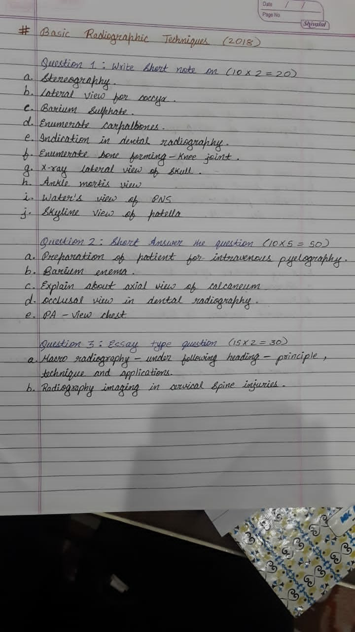 BXRT(Bsc.radiology) 1st&2nd year question papers (2018)